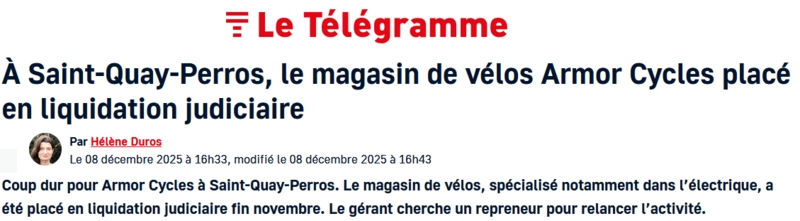 Armor Cycles France à Saint-Quay-Perros placé en liquidation judiciaire 2025-dec
