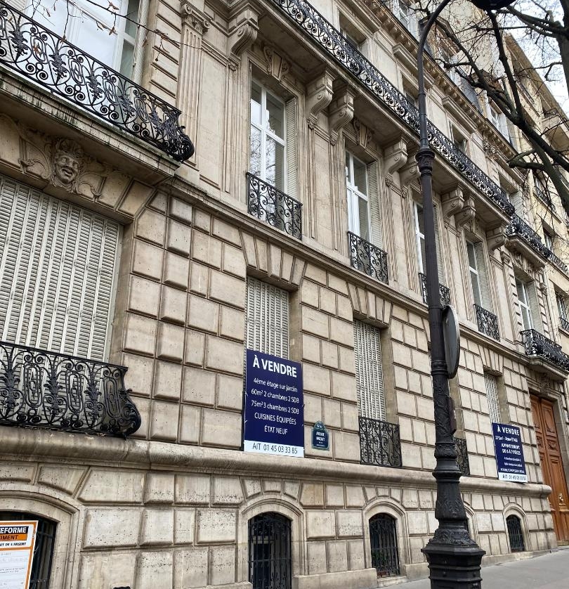 Paris 16e Arrondissement toujours de notre lectrice Mme Kennedy: "Avenue Mozart - Passy: en me promenant à l’heure du déjeuner en ce 12e jour de décembre, voici un échantillon de qui se passe actuellement - sur la 4e photo, c’est tout le bâtiment ENTIER qui est à vendre!