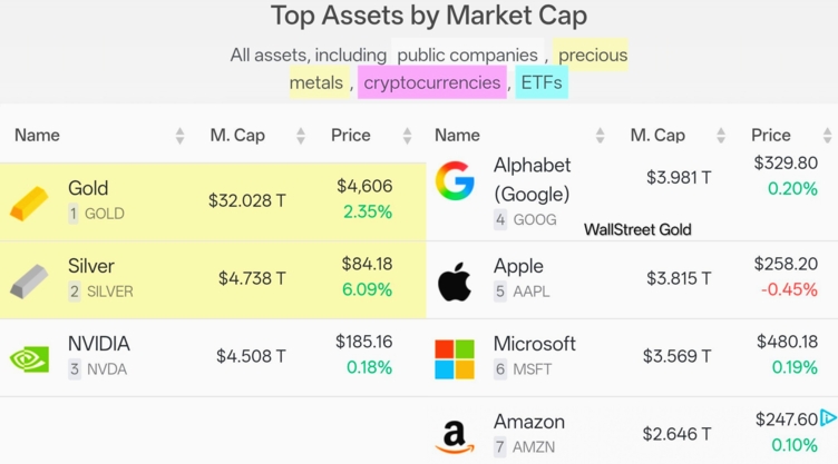 Du coup, l'argent métal a rejoint l'or dans le top des « actifs » de 2026, et cela devant NVIDIA, excusez du peu. Même le très officiel US Mint a vendu TOUTES ses pièces 2026 en moins d'une heure... et demande à ses clients d'attendre un mois avant d'espérer de nouvelles... "US MINT ANNOUNCES 1 MONTH DELAY ON SILVER EAGE COINS".