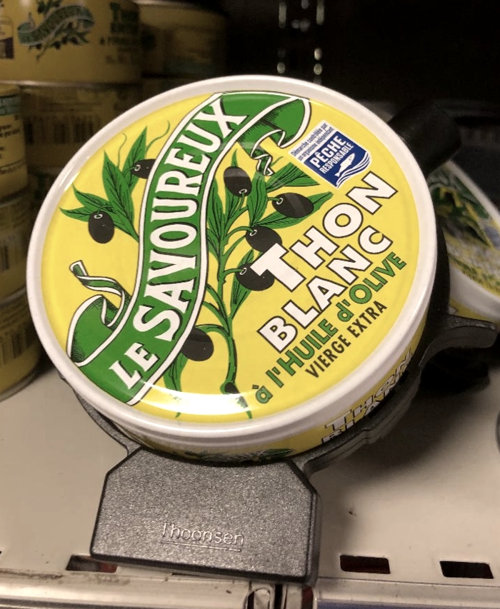 Et il nous le confirme sans y penser: "Même magasin aujourd’hui…3,35€ la pièce. Il semblerait que ce ne soit pas les produits les plus chers, mais les plus volés. Ça va mal finir, je le crains (ci-dessous une boîte de thon !!!!)".