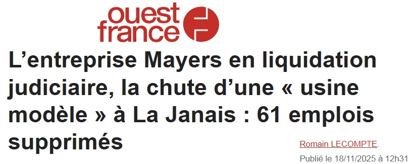 Mayers France en liquidation judiciaire avec 61 emplois 2025-nov