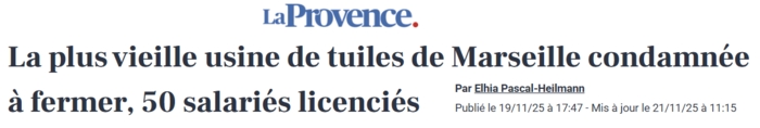 Tuiles Monier France à Marseille a été liquidée avec 50 salariés 2025-nov